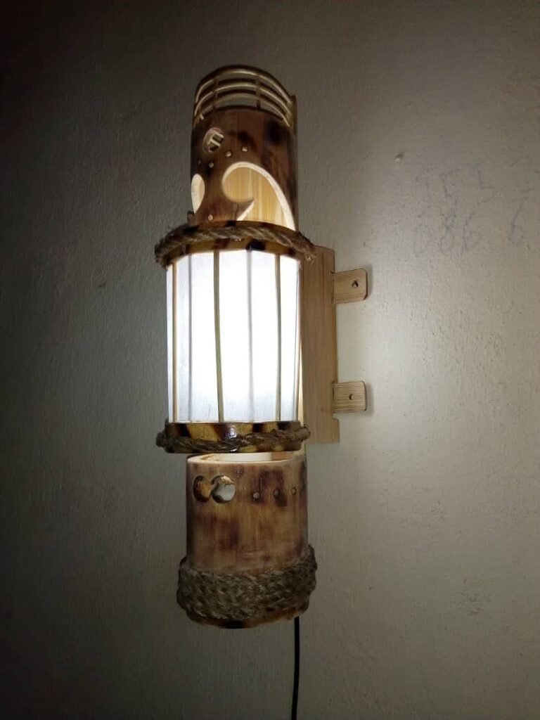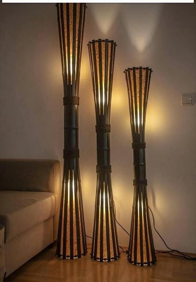 • Abat-jour décoratifs, mariant bambou et pagne africain .